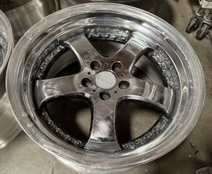 Original (non refinish chrome bubble) centers/Brand new lips and inners. NO resize