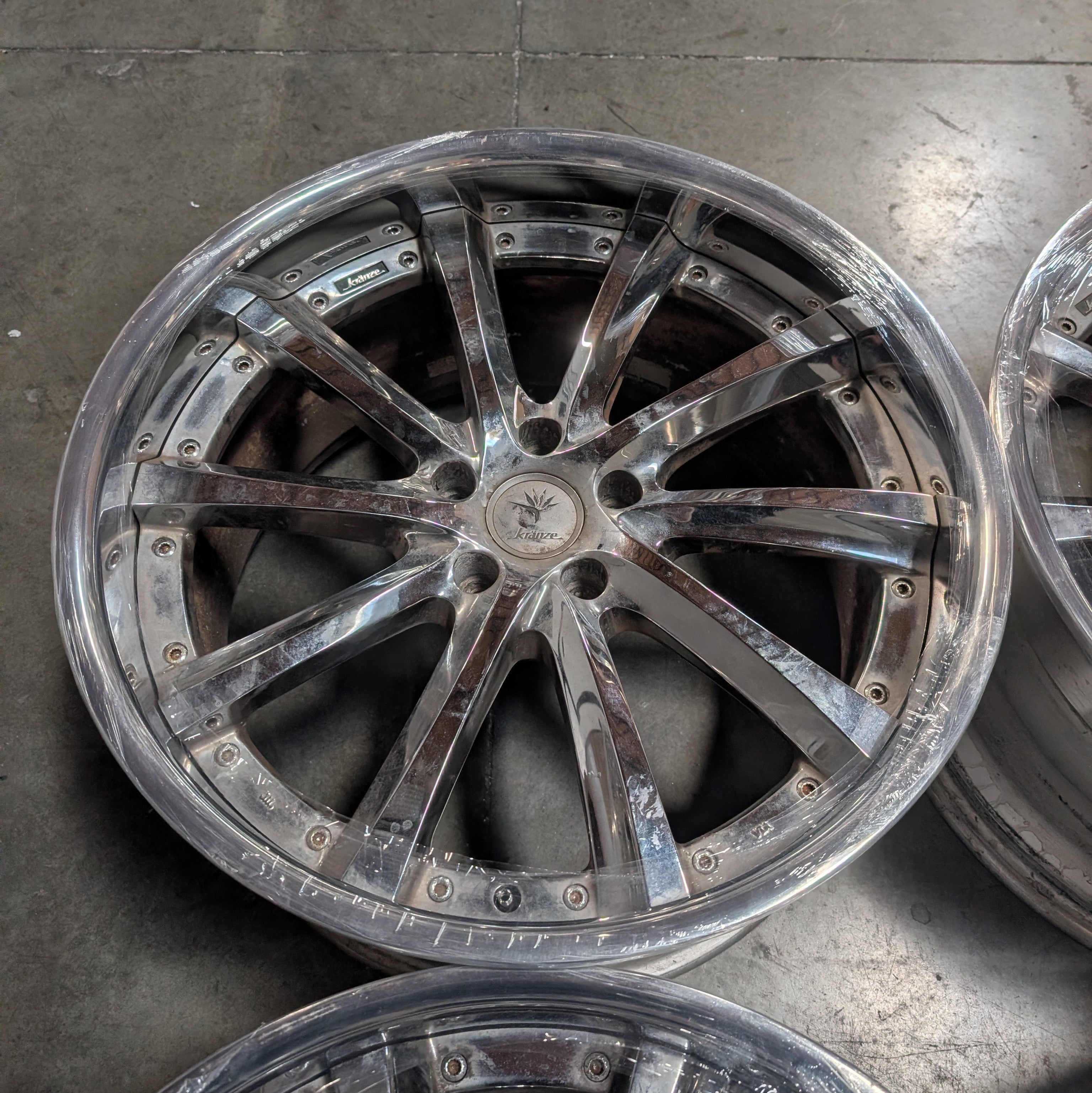 Original chrome centers with 4 new polished lips